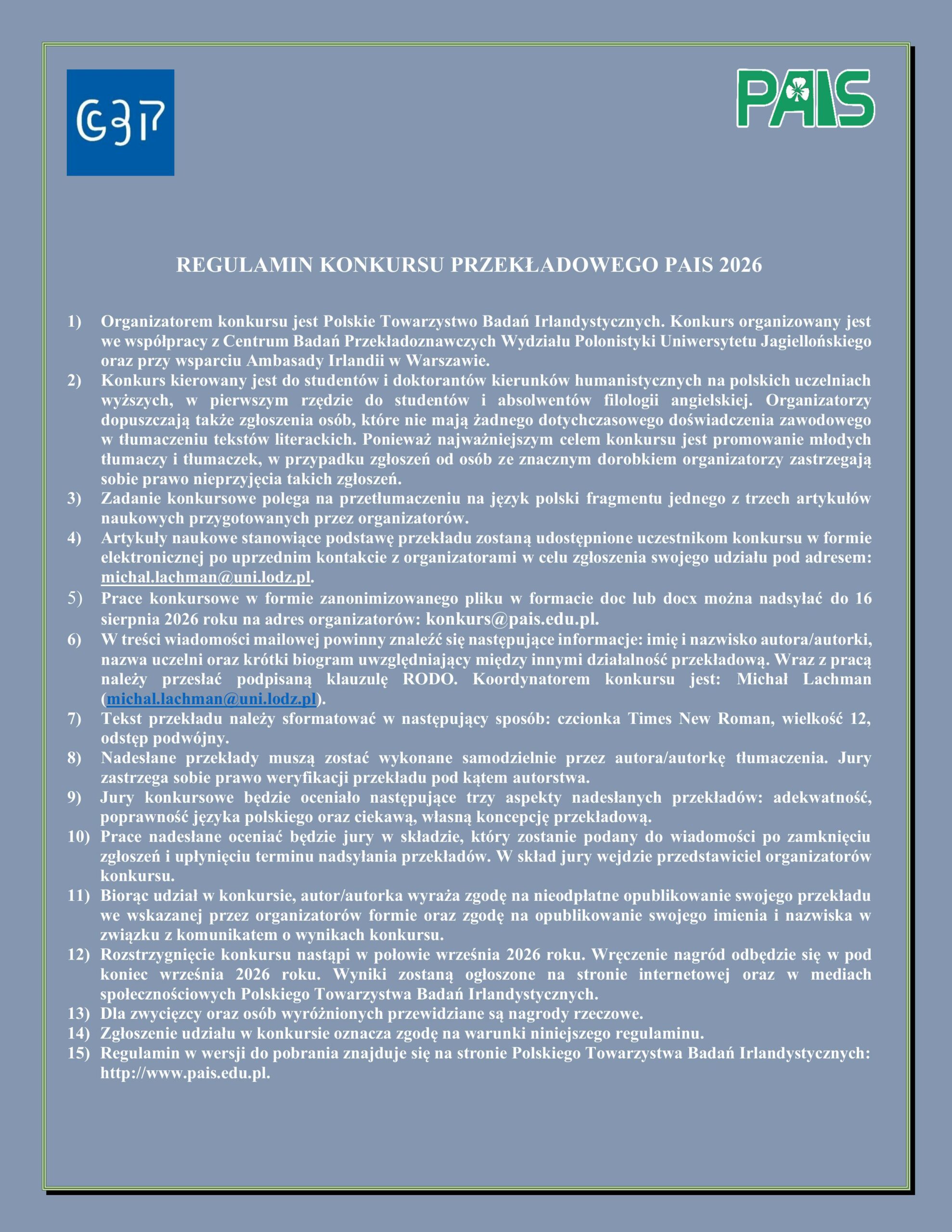 Regulamin konkursu przekładowego PAIS 2026