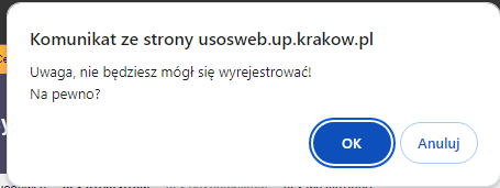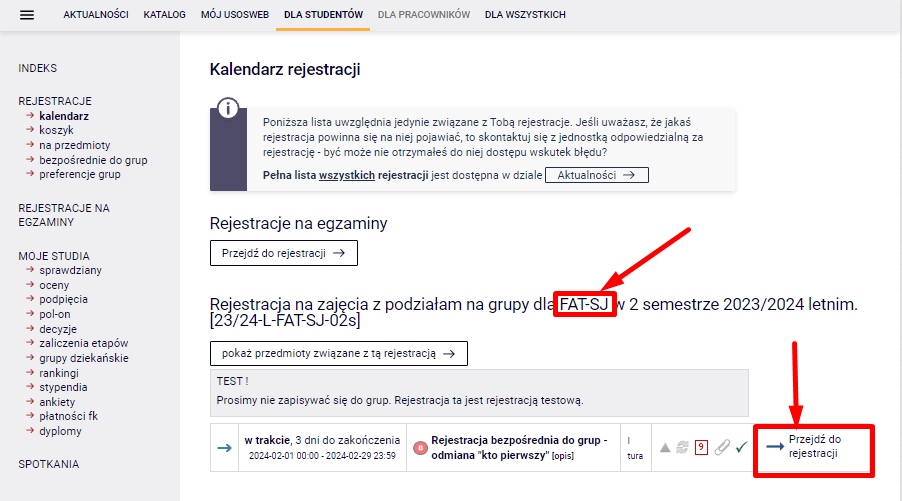 - upewnić się, że rejestracja dotyczy Twojego etapu studiów, następnie „Przejdź do rejestracji”