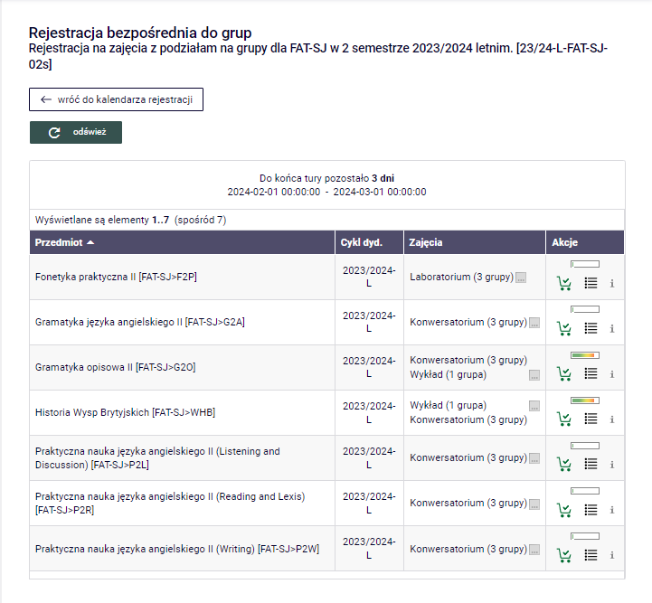 Rejestracja do grup zajęciowych przedmiotów obligatoryjnych.